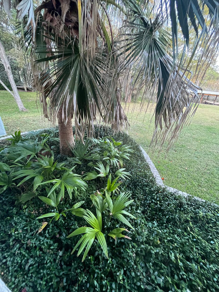 Beautiful, mature landscaping with palm trees, sago palms, cypress, philodendron, Japanese privet, Satsuki azalea, Heavenly Bamboo, Saw Palmetto, yaupon holly, Chinese tallow, Camphor Tree, English ivy, cast-iron plant, cabbage palm, crepe myrtle, and an acre of grass! Garden boxes with sunsails on side of home.
