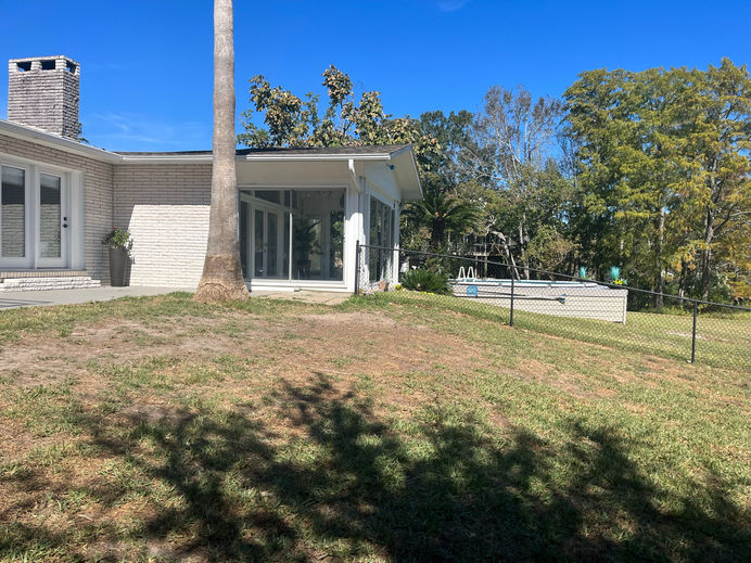 Immaculate mid-century brick home located on an elevated one-acre lot overlooking a protected bayou with low pineland forests and miles of river grass which are home to crawfish, shrimp, crabs, catfish, frogs, American alligators, herons, lizards, turtles, tortoises, spoonbills, osprey, eagles, and many other species. 4 Bedroom/2 Bath, Dock with Boat Lift, RV hookup, 3 carport plus large shop, potential for Mother-in-Law Quarters with own entry, 1-acre with mature landscaping, salt-water pool, and more! The ultimate house for entertaining and extended families.